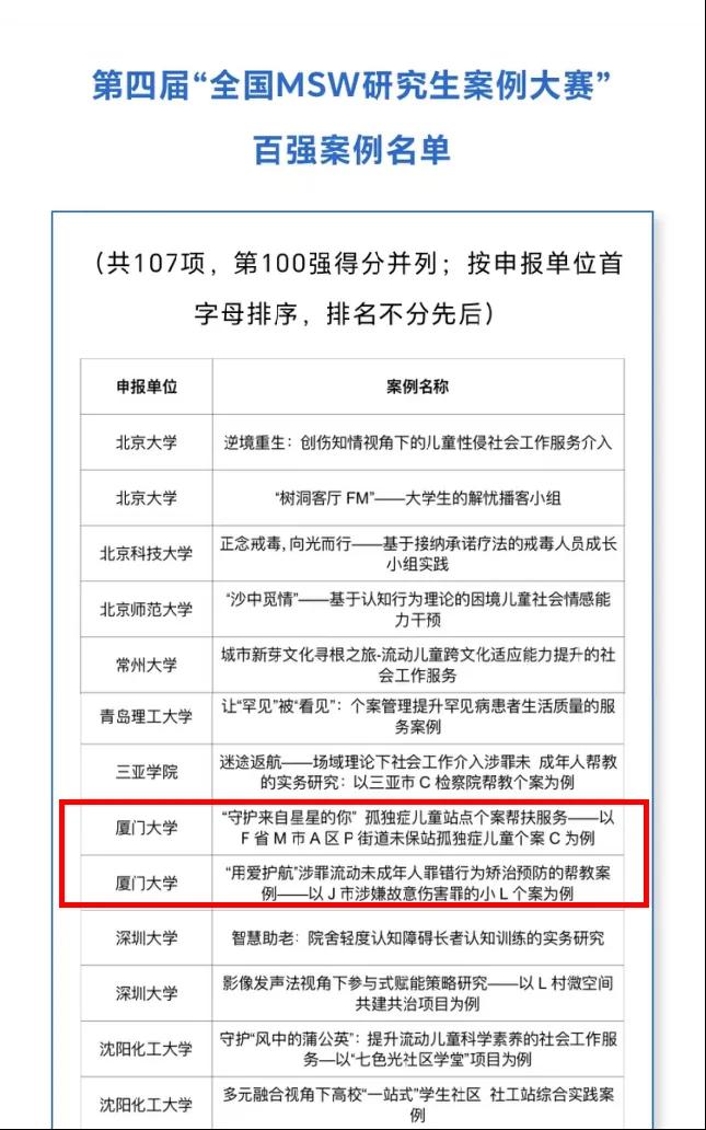 本次获奖展现了我校社pg娱乐电子游戏工作专业学位研究生较强的实务和研究能力。获奖案例均来自我校社pg娱乐电子游戏工作实践研究基地,也体现了我院“政产学研用”协同育人工作的成效。未来,我院社pg娱乐电子游戏工作专业硕士点将继续深化“以实务为基。匝芯课枷,以教学为核心”人才培养模式及“政产学研用”协同育人机制,加快培养国家急需的高层次应用型人才。