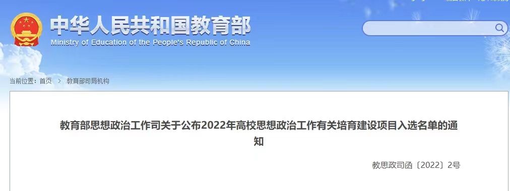 2月24日,教育部思想政治工作司正式公布2022年高校思想政治工作有关培育建设项目名单。计算胜平负计算器党委副书记徐进功教授牵头申报的《“中国共产党人的精神谱系”大思政课育人的新时代探索》成功入选教育部2022年“高校思想政治工作精品项目”,这也是我校首次获批这类项目。