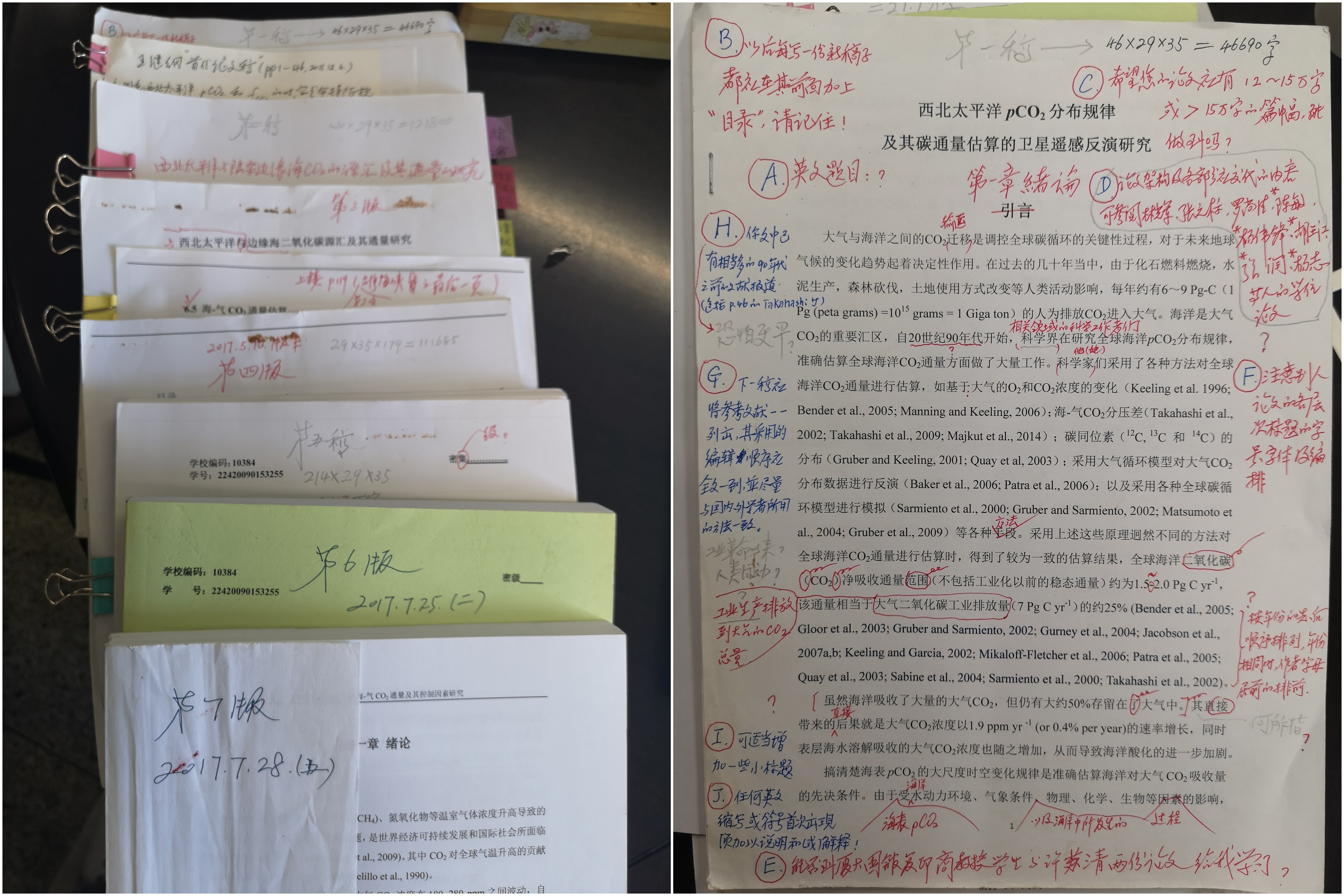 黄奕普教授修改学生论文手稿