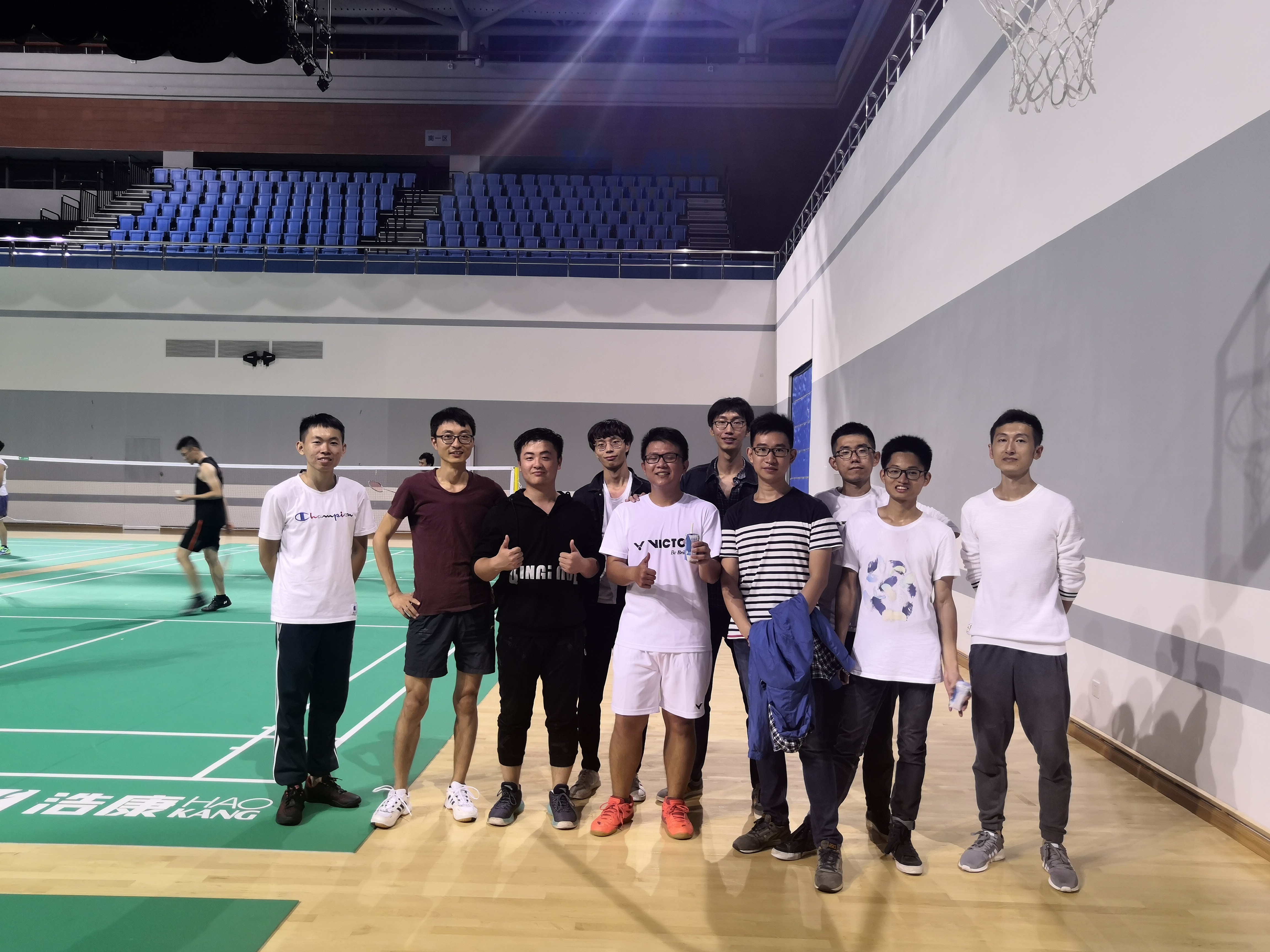 朱呈祥(左二)与课题组研究生一起进行体育锻炼