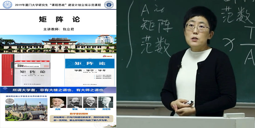 【课程名片】《矩阵论》是电子科学与技术学院面向研究生开设的一门专业基础课,课程负责人是包立君副教授。课程主要讲授线性空间和线性变换的相关知识,目标是锻炼学生应用矩阵理论分析与解决科学技术问题的能力。授课形式博采众长,既讲究实效又注重情怀,旨在引导学生树立求实创新、精益求精的科研观,自强不息、止于至善的价值观和励志成才、报效祖国的人生观,为国家的电子科学与技术发展培养德才兼备的高质量专业人才。