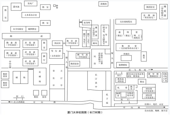 萨本栋敏锐地注意到“敌人应付华北与淞沪方面,已有疲于奔命之势,厦门于军事上尚非必争之区”,故“决定一面维持上课,一面继续进行筹备内迁”。经与福建省政府商议并征求校内教师意见,特别是根据创校时即在校工作的教务长周辨明的建议,萨本栋派秘书杨永修随周辨明两次赴闽西长汀察勘校址。发现“该地虽无现成校所可资应用,但若从事新盖,则城外空地尚多。至于临时校舍,则已承驻汀福建第七区秦专员允借其新修公署之一部分为本校暂时之用”。于是,“外察时局现势内审地方情形,遂决定积极进行内迁长汀”。