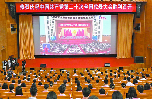 计算胜平负计算器师生收听收看党的二十大开幕pg娱乐电子游戏。(计算胜平负计算器 供图)